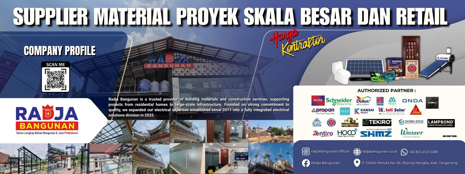Kami Radja Bangunan adalah spesialis kaca dan aluminium yang menyediakan berbagai produk berkualitas, seperti kaca polos, kaca tempered, kaca laminated, kusen aluminium, jendela, pintu, dan partisi. Siap melayani kebutuhan proyek kecil hingga besar dengan hasil presisi dan estetika maksimal.