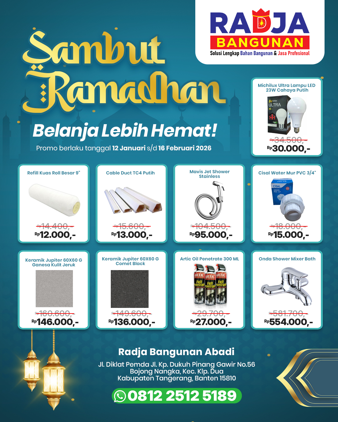 Nikmati harga spesial untuk berbagai kebutuhan renovasi rumah mulai dari keramik, perlengkapan sanitari, hingga lampu LED. Promo berlaku terbatas dari 12 Januari s/d 16 Februari 2026
